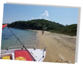 Mit diesem Bott lässt sich die vorgelagerte Insel Amouliani locker zweimal umrunden. Es ist